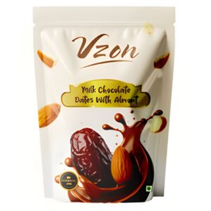 Vzon Milk Chocolate Dates with Almond combine natural sweetness with indulgent texture. Each piece features a whole almond nestled inside a soft date, wrapped in creamy milk chocolate. This 300g pack offers a generous supply of nutritious treats, ideal for gifting, sharing, or elevating your snack table.